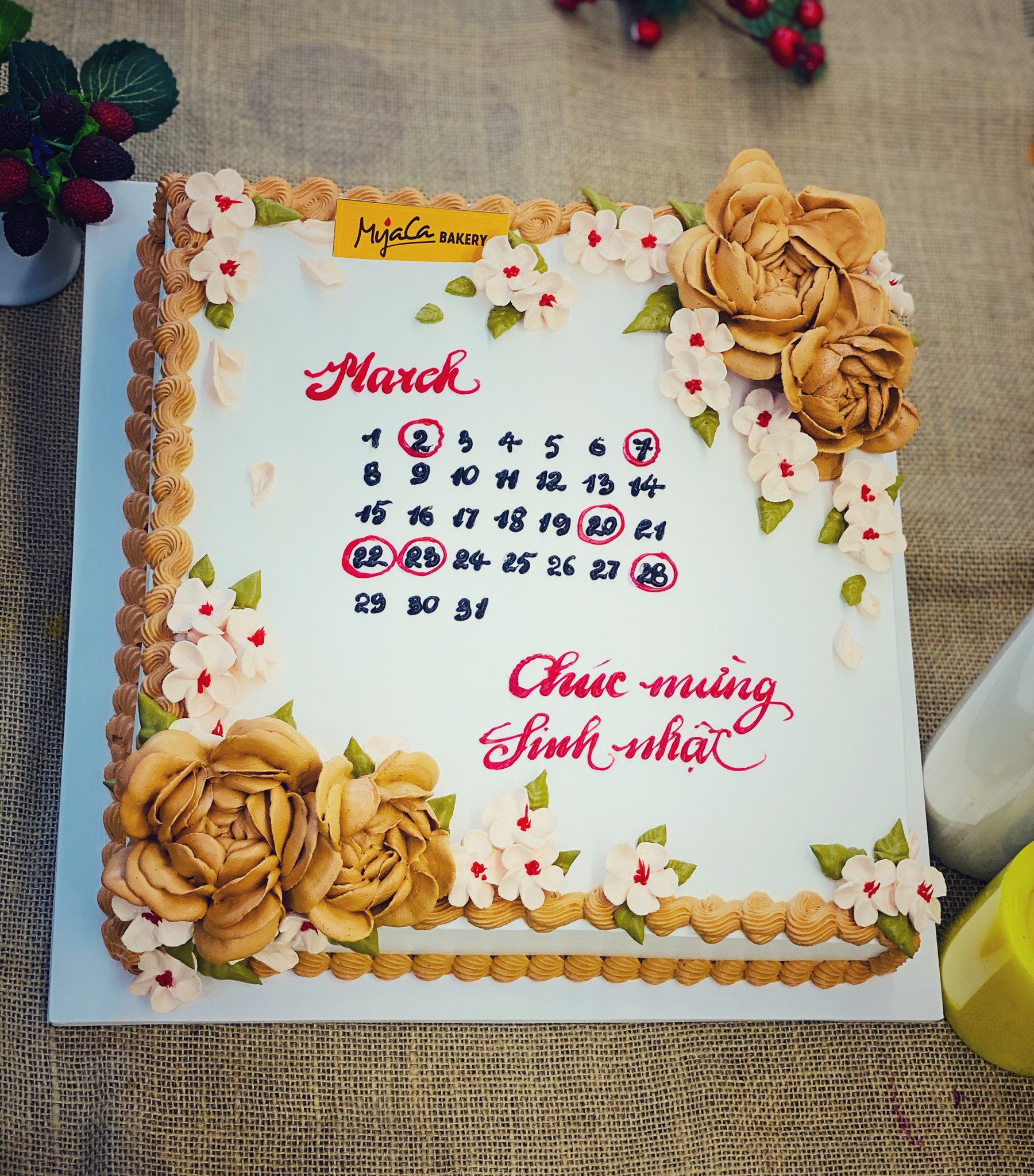 Myaca Bakery  là thương hiệu bánh  Gato kem tươi Handmade được rất nhiều khách hàng thương mến, không chỉ bởi bánh 100%  Organic không chất bảo quản, không phụ gia, với nguyên liệu làm bánh cao cấp, tạo nên hương vị bánh kem có độ ngọt vừa nhẹ , thanh mát vô cùng. Mà còn bởi mẫu mã đa dạng, phong phú…đối với Myaca mỗi chiếc bánh là một tác phẩm nghệ thuật, nơi trao gửi tình cảm và gói trọn thông điệp yêu thương.